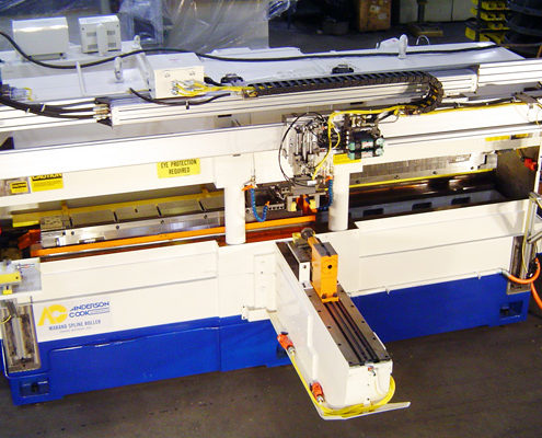 The Marand Model 300E spline rolling machine is Anderson-Cook’s innovative alternative to traditional hydraulic drive machines. A vector-duty induction motor eliminates the hydraulic system freeing up precious floor space. The 300E series boasts increased control of machine velocity, acceleration, and stroke while dramatically reducing work-place decibels. Additional benefits include adjustable pre-load on rolled parts, greatly reduced need for machine maintenance, and a dramatic cut in energy demand and resultant operating expense. The Marand Model 300E offers these advantages, and the respected Anderson-Cook nameplate.